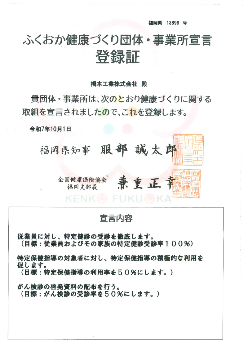 HOME news & topicsふくおか健康づくり団体・事業所登録をしました! お知らせ NEWS & TOPICS ふくおか健康づくり団体・事業所登録をしました! お知らせ 2025.10.20 社員の健康づくりもサポート! お知らせ一覧に戻る前のページに戻る